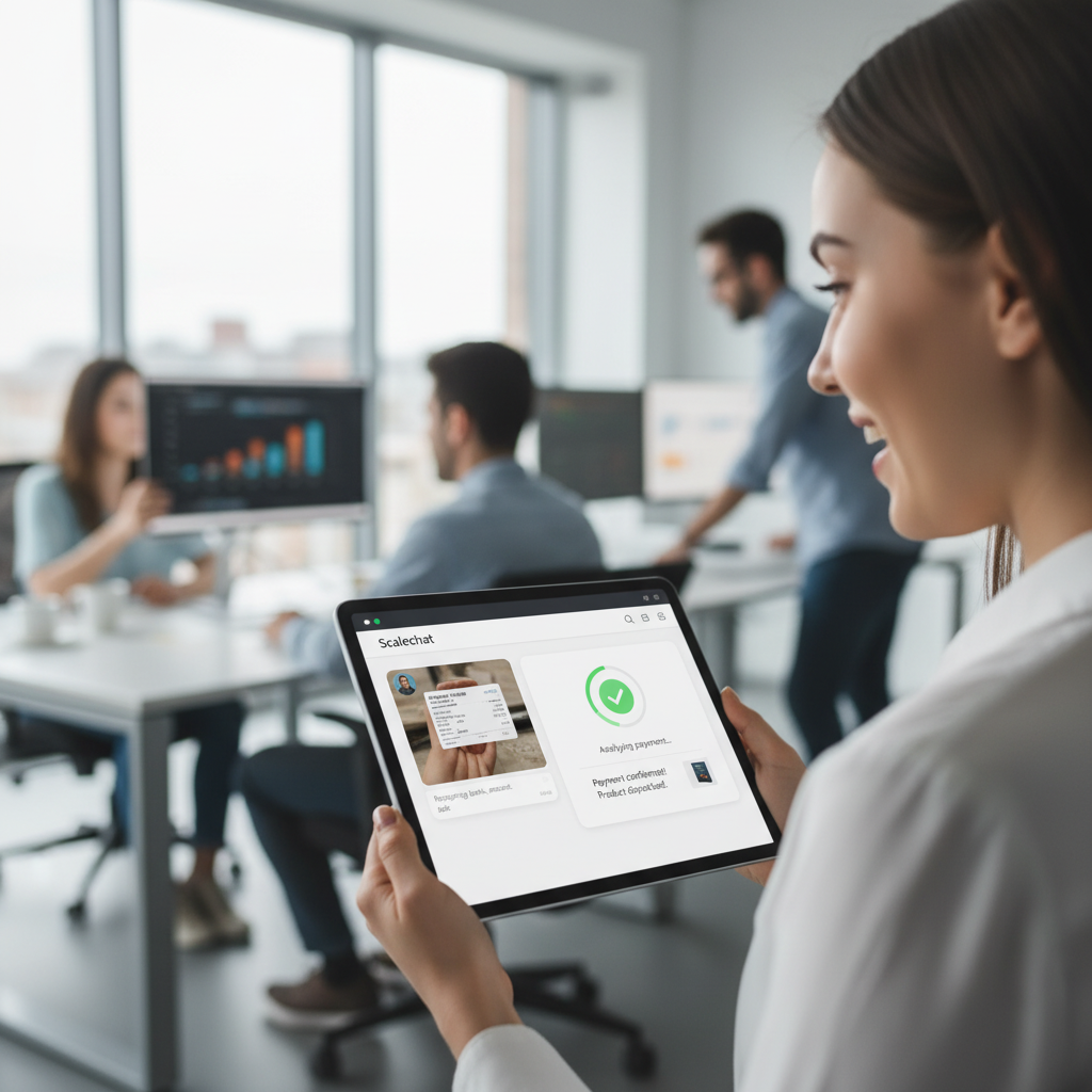 Si alguien te paga con una foto de banco (un comprobante), el asistente de Scalechat lo analiza detalladamente y envia el producto.